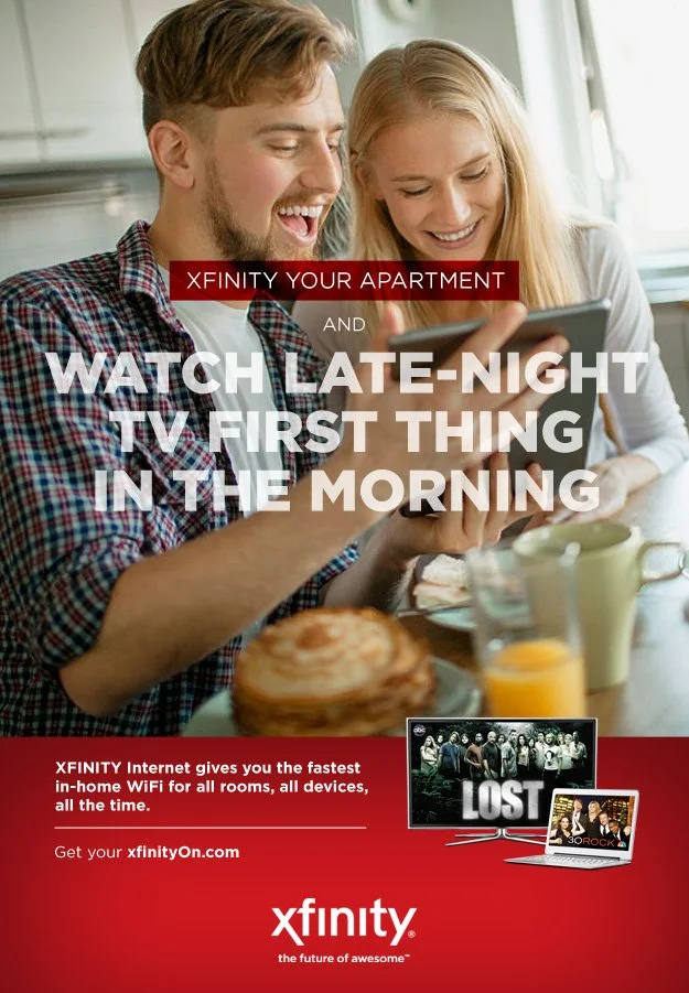 Posters and awareness brochure for buildings that recently got access to XFINITY Internet and TV.